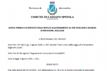 Avviso di deposito nota di aggiornamento al DUP 2026/2028 e Bilancio di previsione 2026/2028
