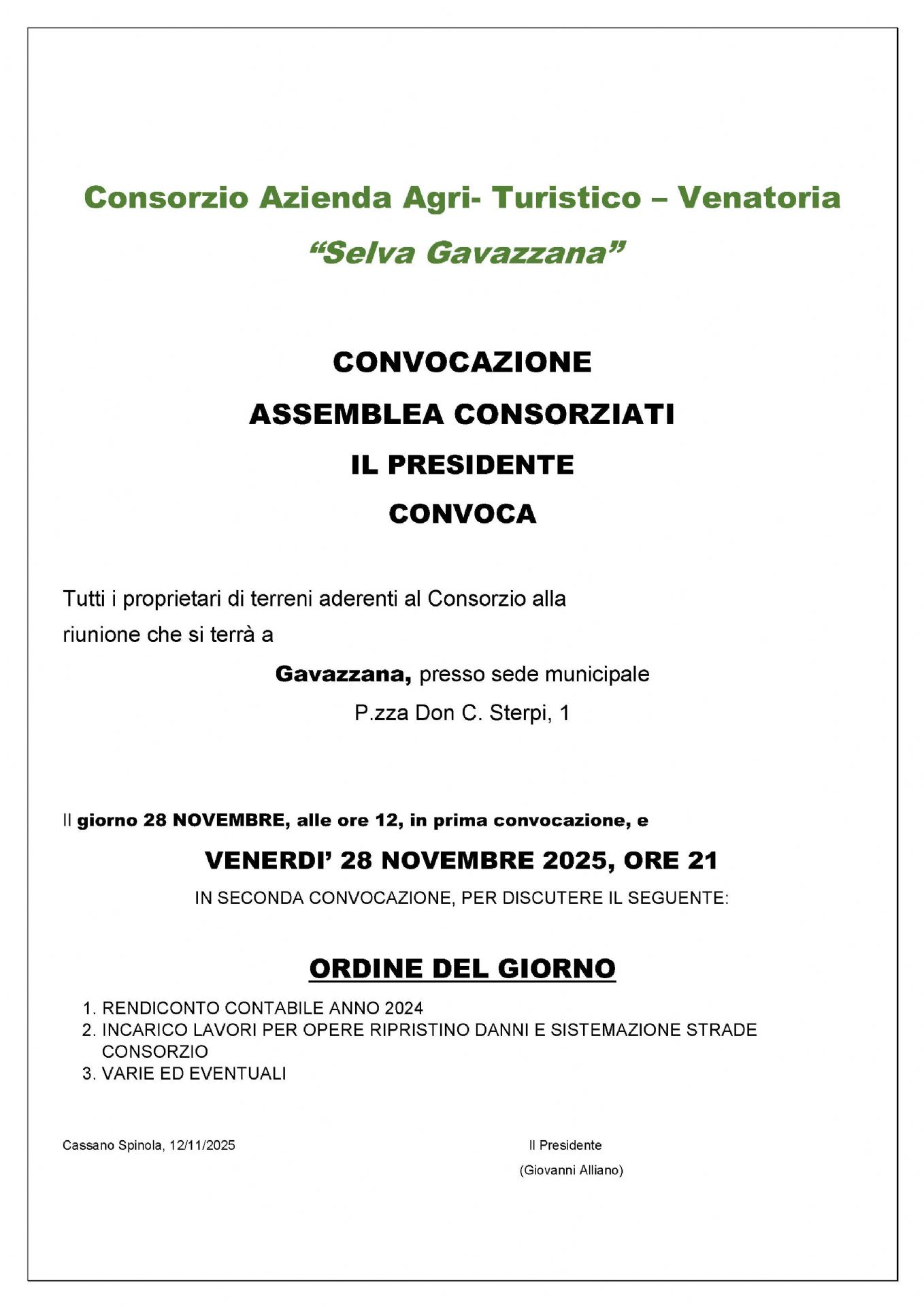 Cassano Spinola, 12/11/2025