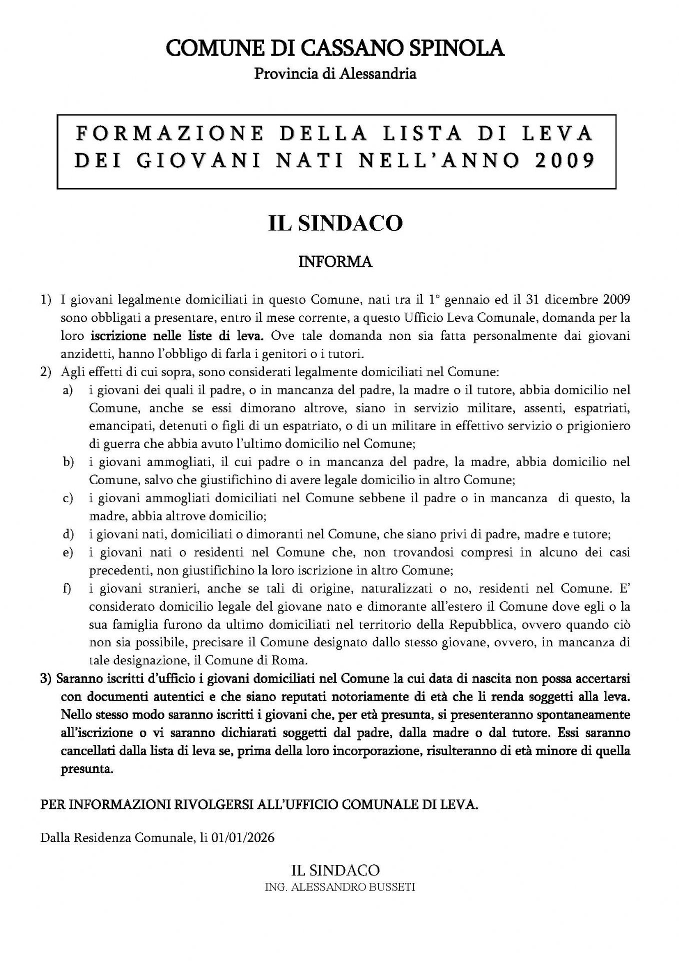 Obbligo di iscrizione nelle liste di leva