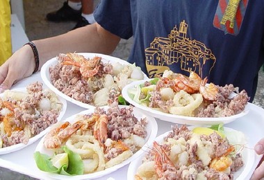 Sagra del Pesce e del Cortese - Tavoli con gente